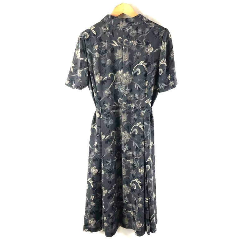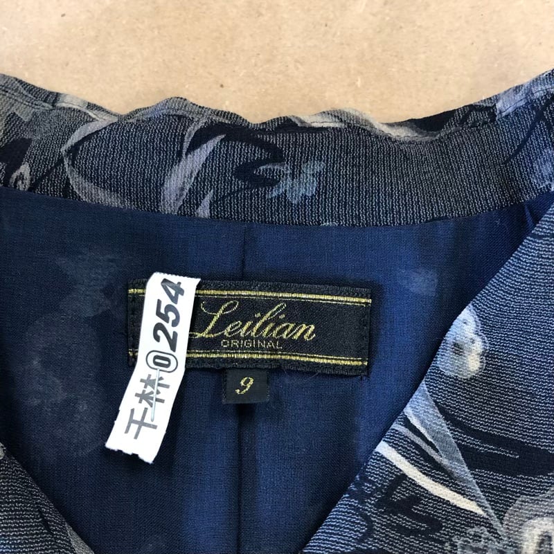 レリアン leilian ワンピース ロング 花柄 腰ひも付き 肩パット 半袖 ダークグレー 9サイズ 984541