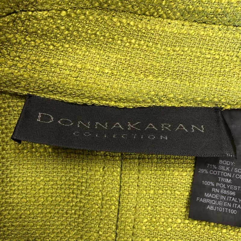 ダナキャランコレクション DONNA KARAN COLLECTION ジャケット デザインボタン シルク 綿 黄緑系 11サイズ 984526