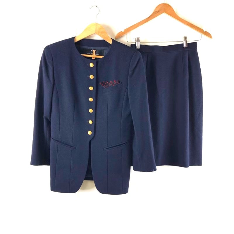 コージワタナベスティル KOJI WATANABE STYLE セットアップ ジャケット スカート スーツ ゴールドボタン ポケットチーフ付き 裏地付き 紺 ネイビー系 984522