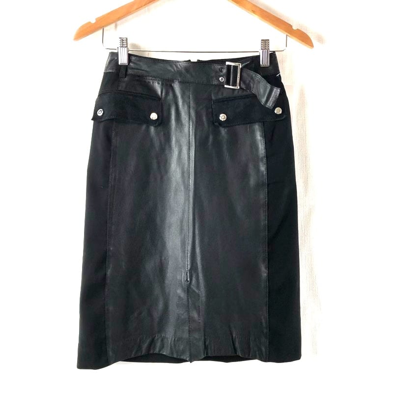 バレンザスポーツ Valenza Sports スカート 異素材 馬革 ベルトデザイン ブラック 38サイズ 984902