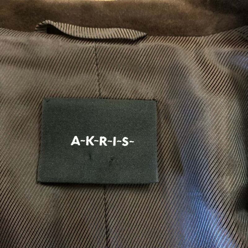 アクリス AKRIS ジャケット ラムスエード スリット袖 ボタン ポケット 肩パッド ブラウン 968696
