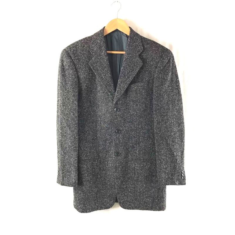 アルマーニコレツォーニ ARMANI COLLEZIONI ジャケット ミックス生地 イタリア製 フェイクポケット 肩パッド ダークグレー系 985726