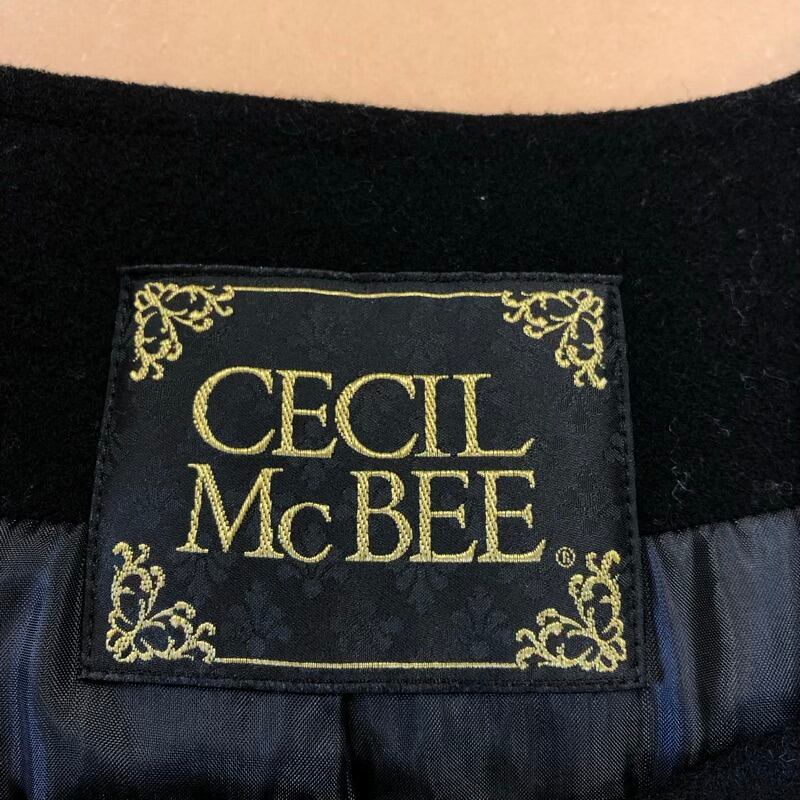 セシルマクビー CECIL McBEE コート ノーカラーコート デザインボタン スパンコール ビーズ 花柄 刺繍 裏地付き 黒 Mサイズ 985729