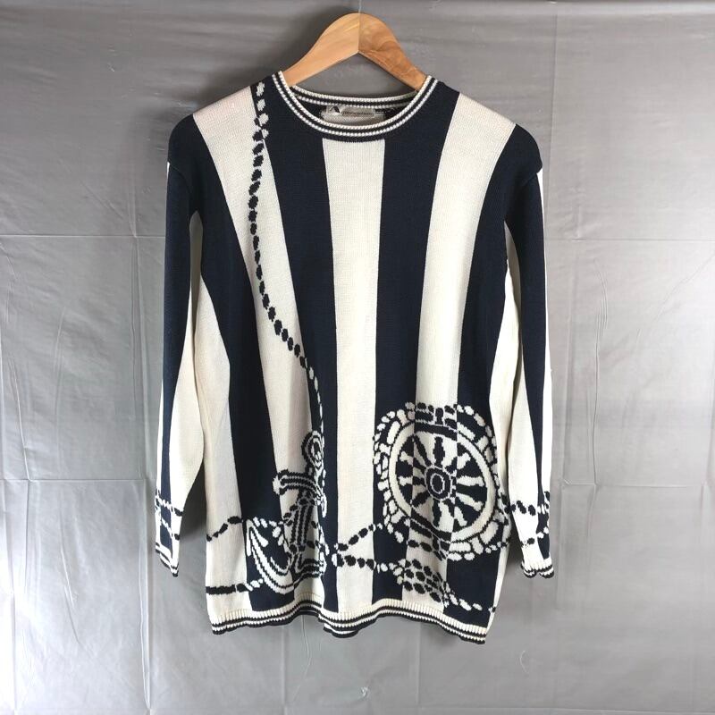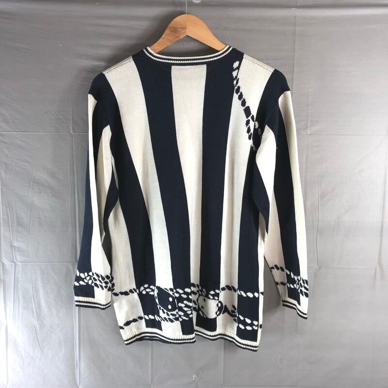 アクアスキュータム Aquascutum ニット 長袖 ストライプ 柄模様 綿100% リブ 白 アイボリー 紺系 984028