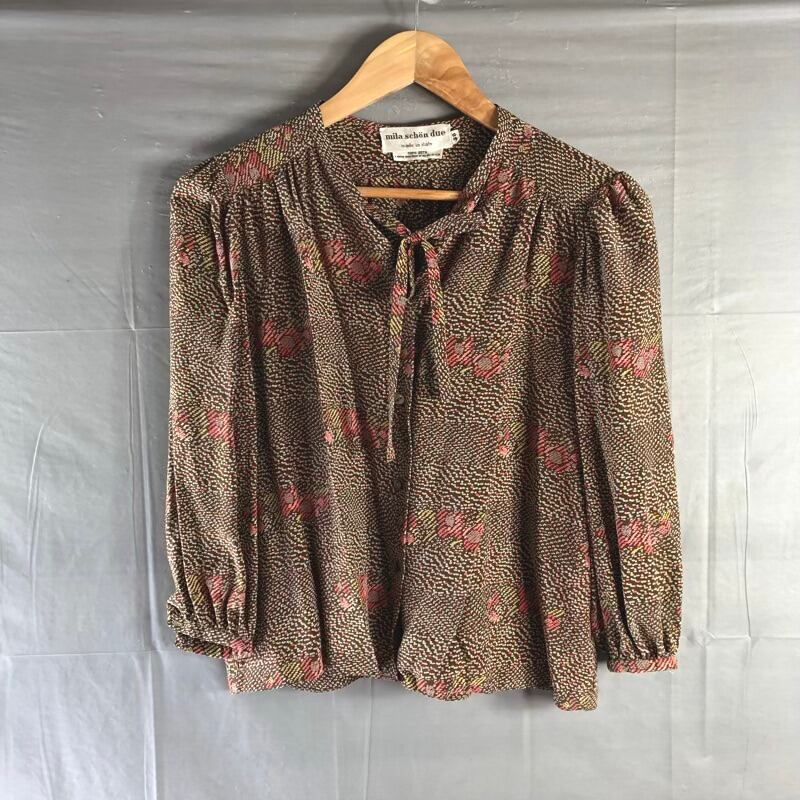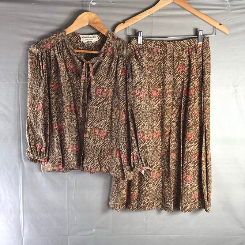 ミラショーン mila schon due セットアップ カットソー スカート 柄模様 シルク100% イタリア製 ブラウン系 38サイズ 982964