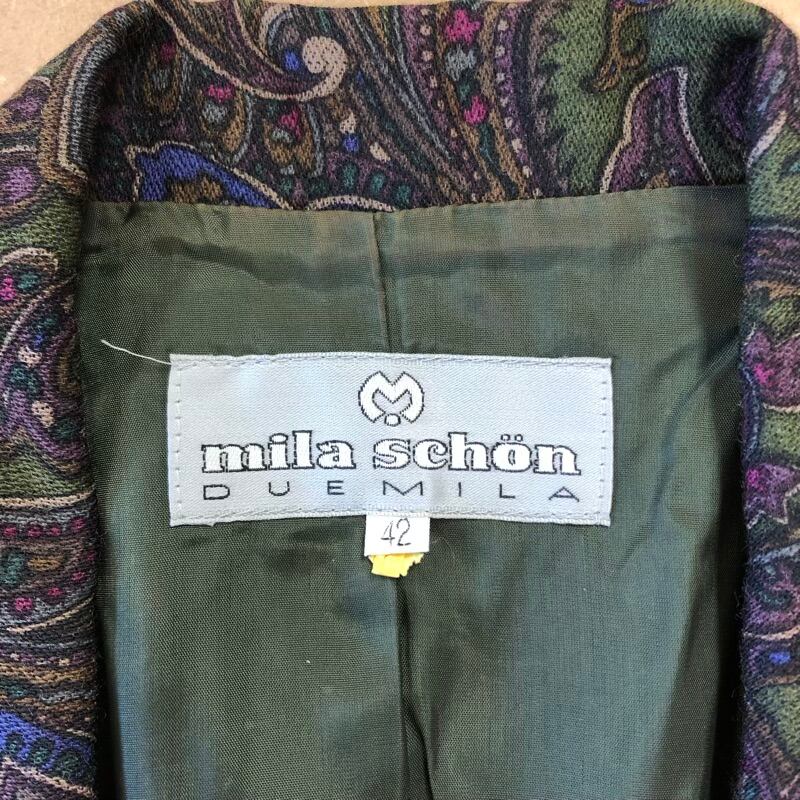 ミラショーン mila schon ジャケット ペイズリー柄 毛100% 裏地付き 日本製 グリーン系 深緑色 42サイズ 984648