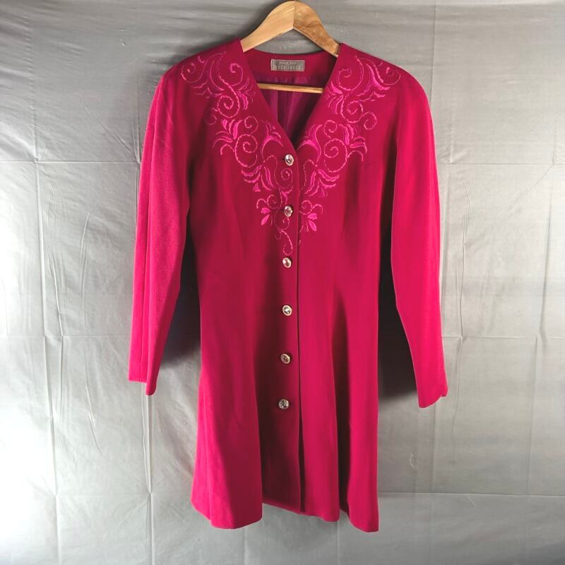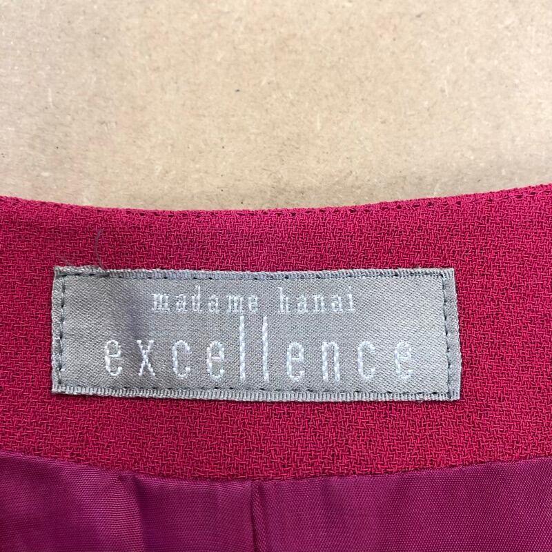 マダムハナイ madame hanai excellence セットアップ ジャケット スカート デザインボタン 刺繍 肩パッド 裏地付き ショッキングピンク系 9号サイズ 984651