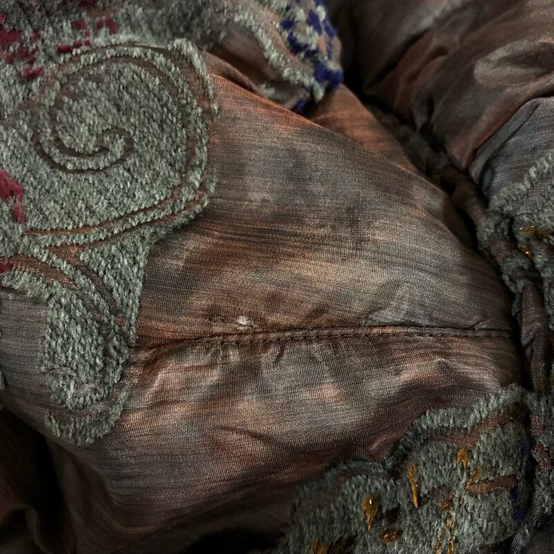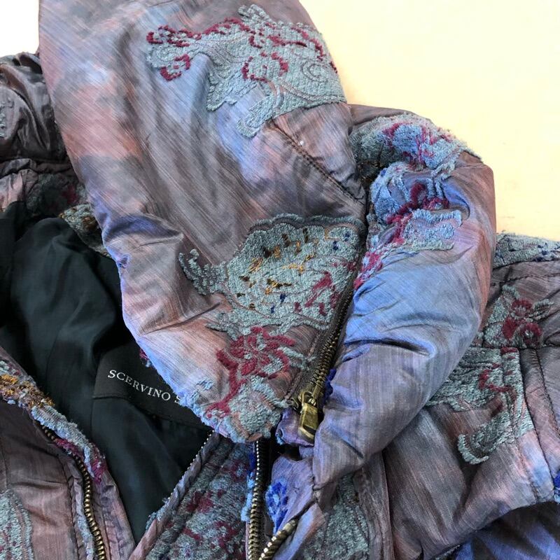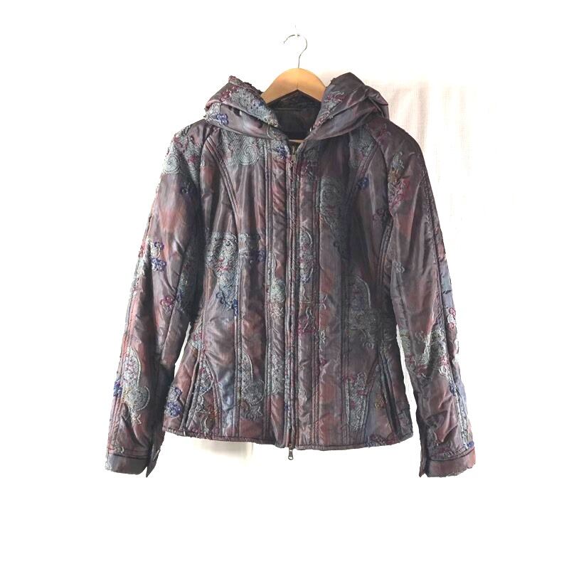 シェルヴィーノストリート SCERVINO Street ジャケット ダマスク柄 フード ジップ グレー くすみブルー ブラウン系 44サイズ 980767
