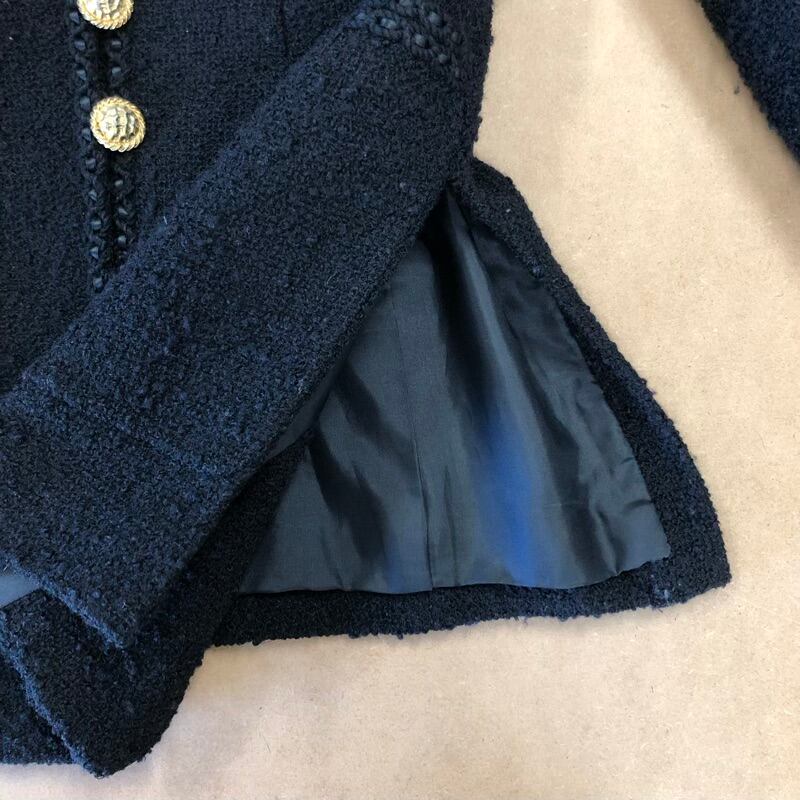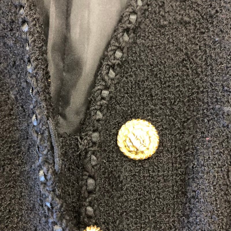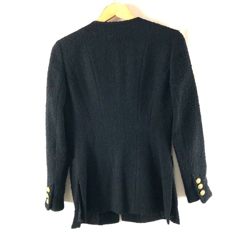 ジャイロ JAYRO ジャケット ツイード ノーカラー ゴールドボタン サイドスリット 裏地付き ブラック Sサイズ 980768