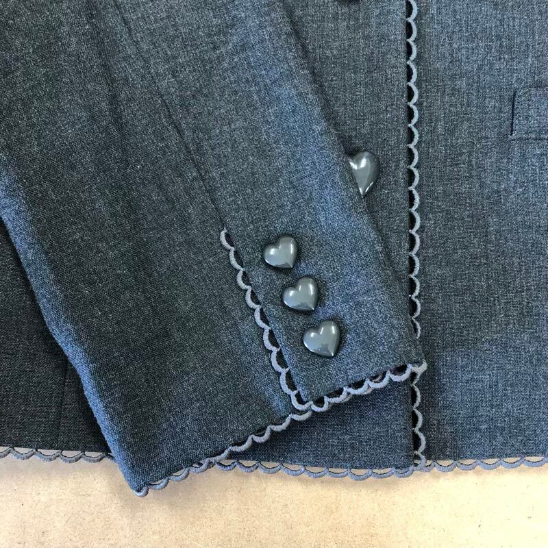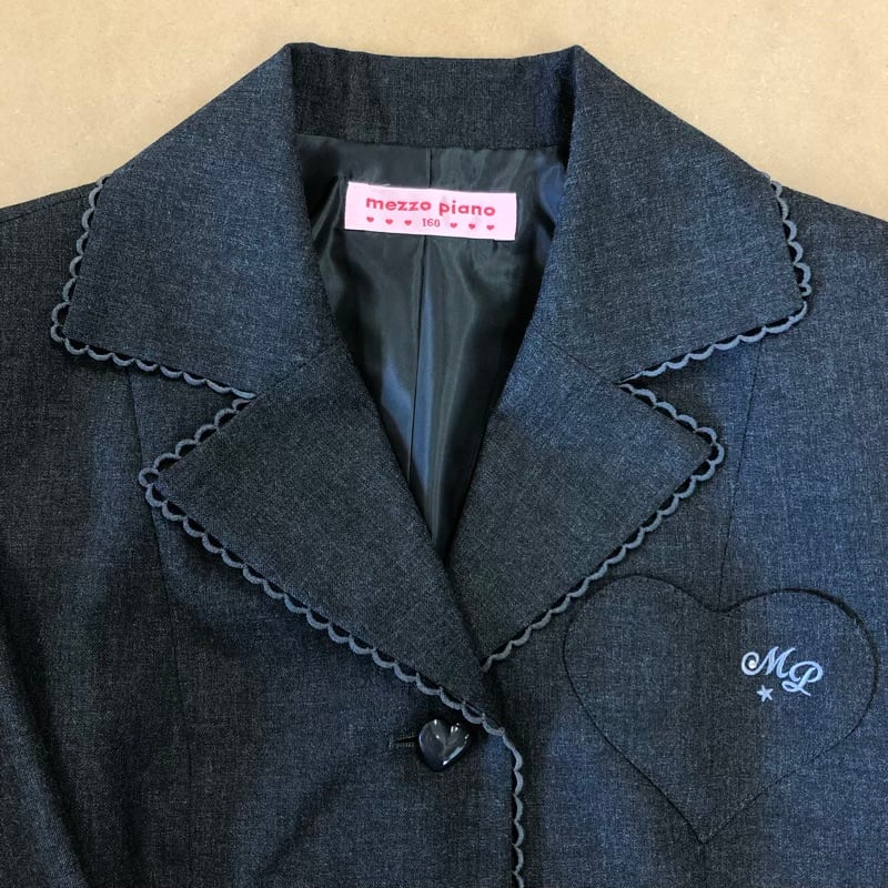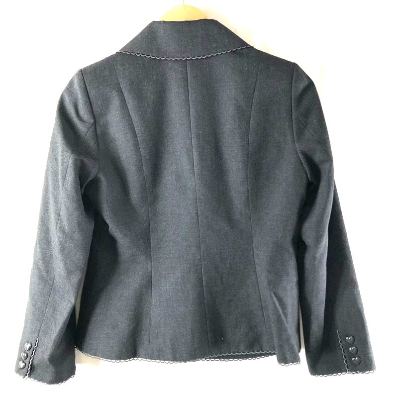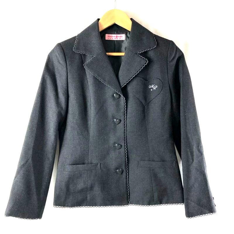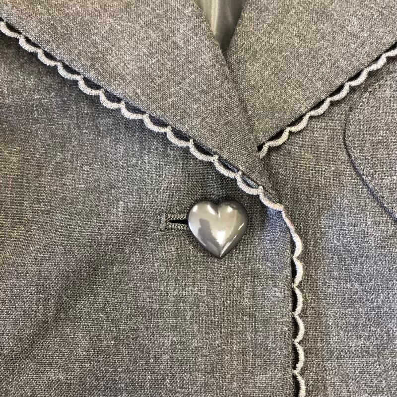 メゾピアノ mezzo piano ジャケット テーラード レースデザイン ロゴ刺繍 ハートボタン 裏地付き グレー 160(L)サイズ 980769