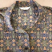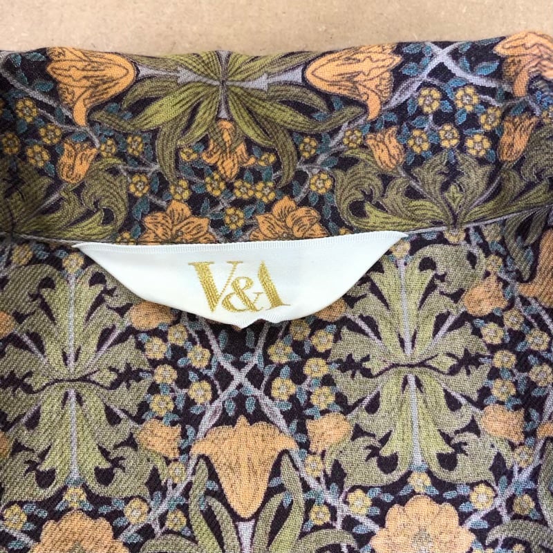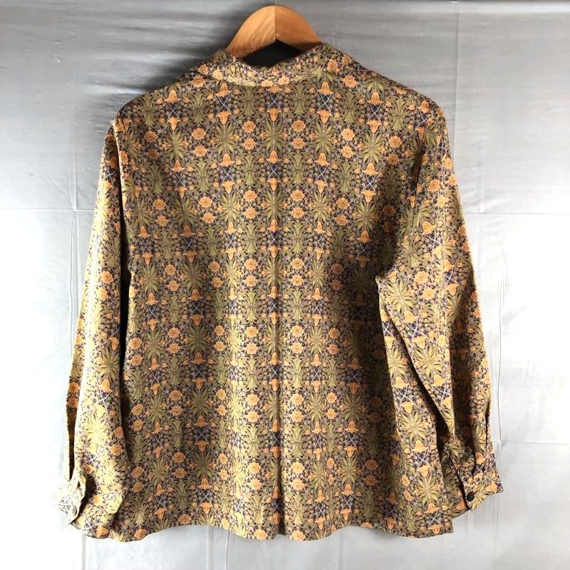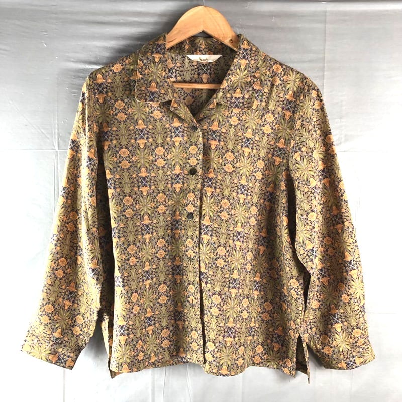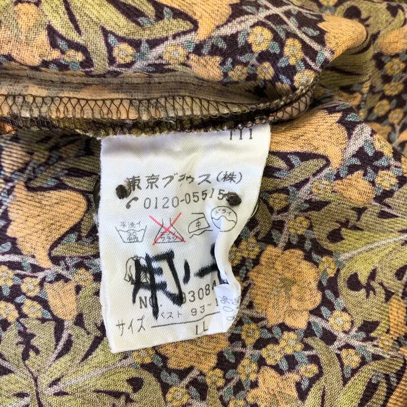 V&A 東京ブラウス ブラウス 長袖 フラワープリント ボタニカル柄 レトロ 日本製 ブラウン系 イエロー系 LLサイズ 982948