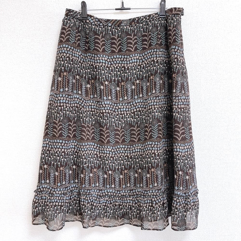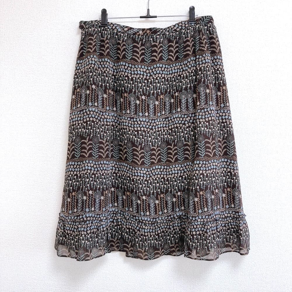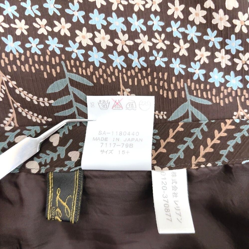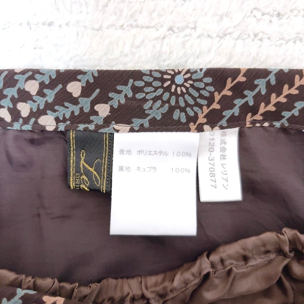 レリアン Leilian スカート 花柄 草木 スコート付き ブラウン系 15+サイズ 978801