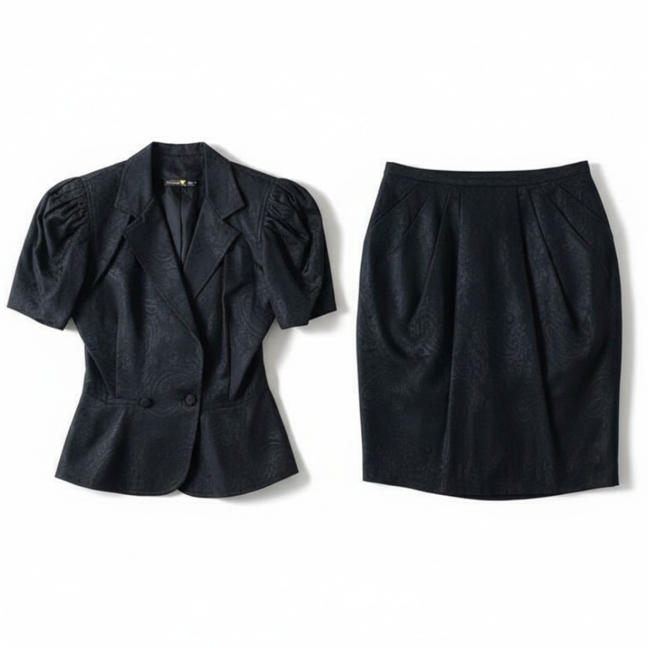 マクダビッド McDavid セットアップ スーツ 半袖ジャケット 肩パット スカート スリット 柄模様 黒 38サイズ 984408