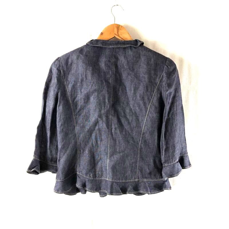 タケオニシダ TAKEO NISHIDA ジャケット 麻100% フリル ステッチ 肩パッド ネイビー系 9サイズ 985177