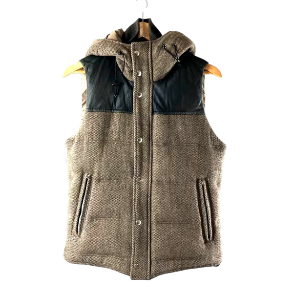 ブルーワーク BLUE WORK ベスト ダウンベスト ツイード生地 ジップ付きポケット 内側ポケット 羊革 ブラウン 2サイズ 984897