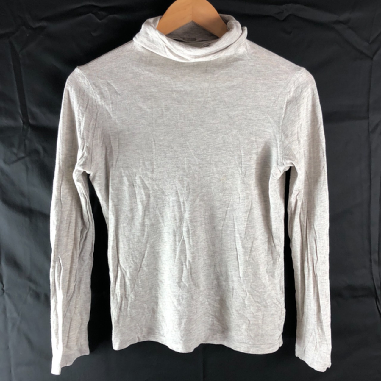 やさしいグレーが合わせやすい、シンプルなタートルネックカットソーです。
