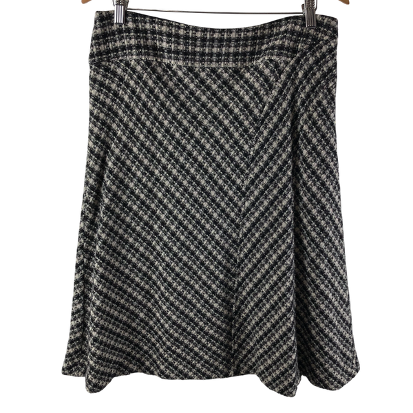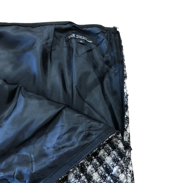 ニジュウサンク 23区 スカート チェック 裏地付き ウール 日本製 サイドファスナー 黒 白 48サイズ 984645
