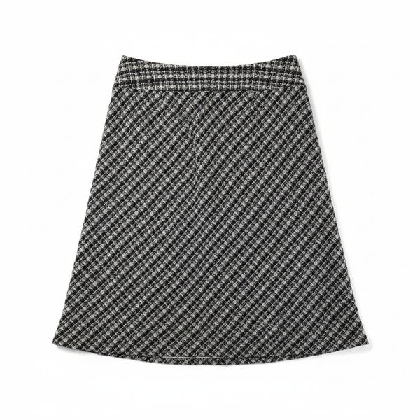 落ち着いたモノトーン調の柄が上品な、ツイード風素材のスカートです。