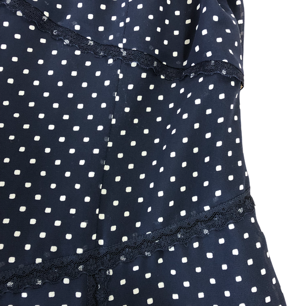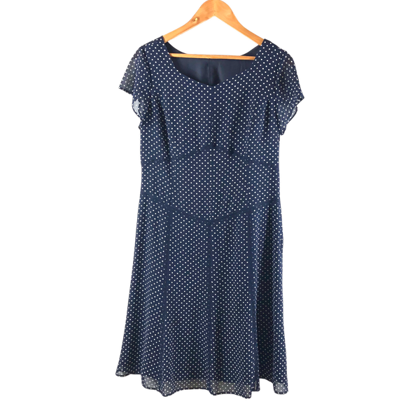 ニジュウサンク 23区 ワンピース 水玉 レース フレア 裏地付き タグ付き ネイビー系 46サイズ 984622