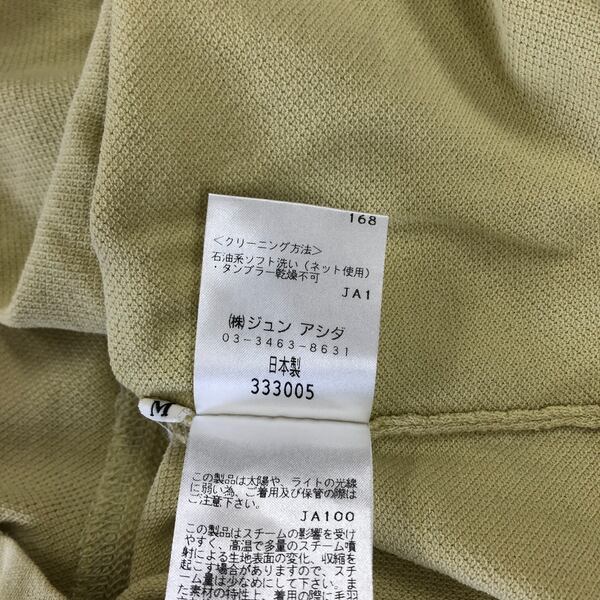 ジュンアシダ jun ashida カットソー 半袖 バックファスナー 日本製 黄緑色 Mサイズ 982949