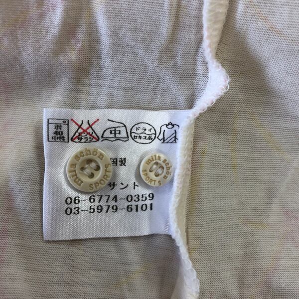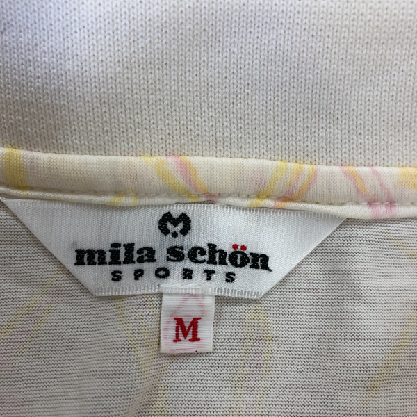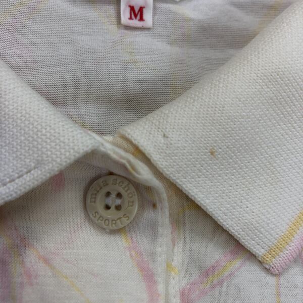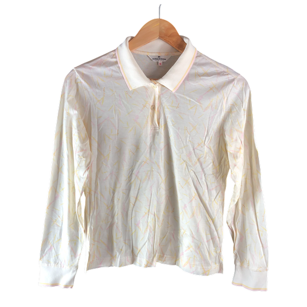 ミラショーン mila schon SPORTS ポロシャツ 長袖 柄模様 ロゴボタン スリット裾 綿100% 黄色 ピンク クリーム色系 Mサイズ 982950