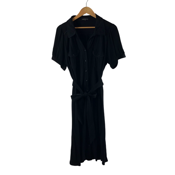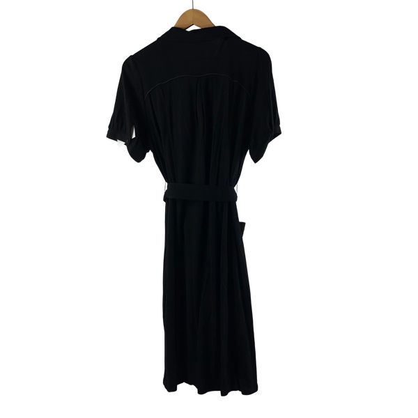 ニジュウサンク 23区 ワンピース 半袖 ロング ウエストリボン付き ブラック 46サイズ 984640