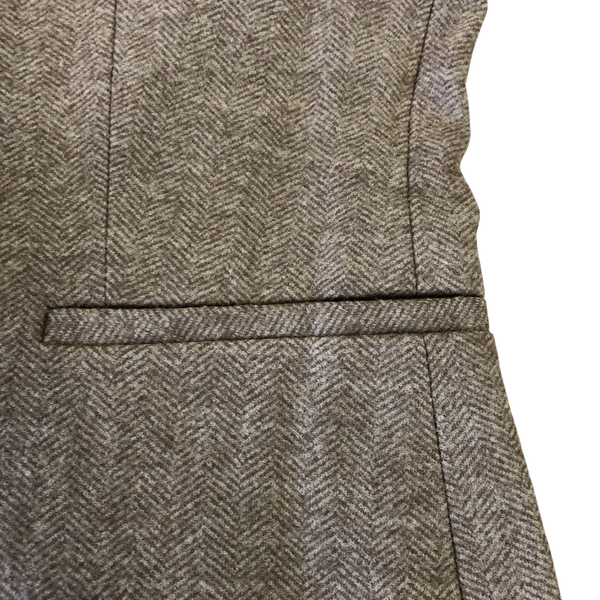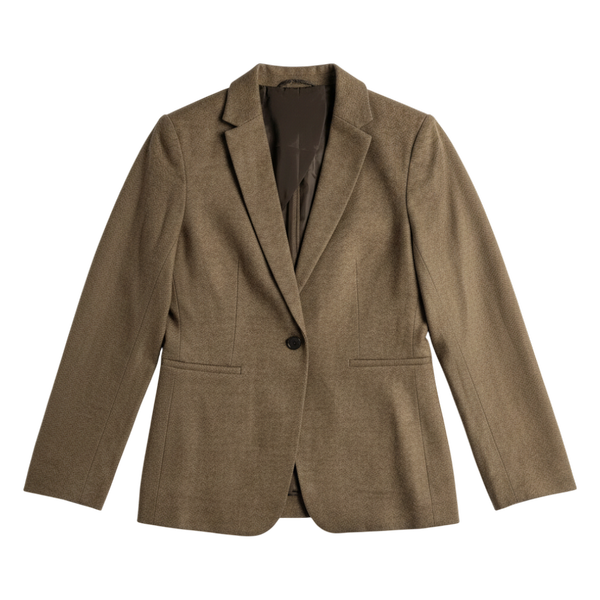 落ち着いたブラウン系カラーとヘリンボーン調の生地感が、大人の雰囲気を引き立ててくれるテーラードジャケットです。