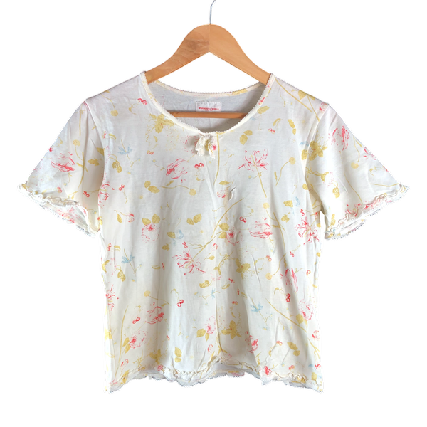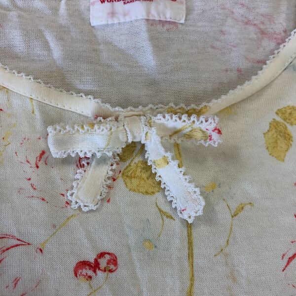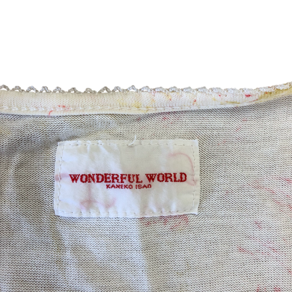 ワンダフルワールド WONDERFUL WORLD カネコイサオ カットソー 半袖 花柄 リボン フリル レース 綿100% アイボリー キナリ系 Mサイズ 982957