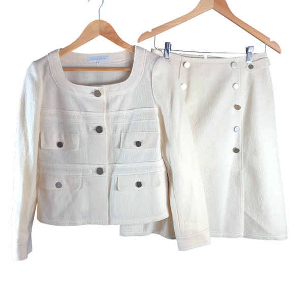 モガ MOGA セットアップ スカートスーツ ゴールドボタン ステッチデザイン ホワイト系 アイボリー 2サイズ 984637