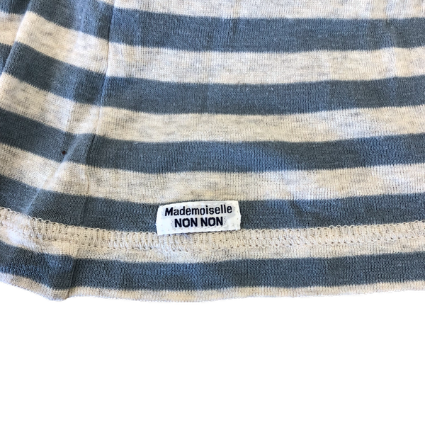 マドモアゼルノンノン Mademoiselle NONNON カットソー Tシャツ ハイネック ボーダー 長袖 綿100% 水色 グレー 982945