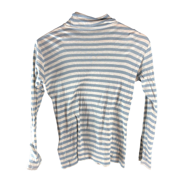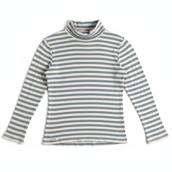 爽やかなボーダーが目を引くタートルネックカットソーですよ。