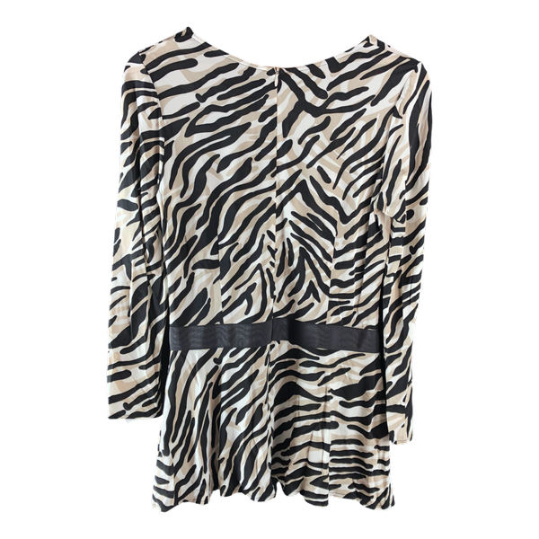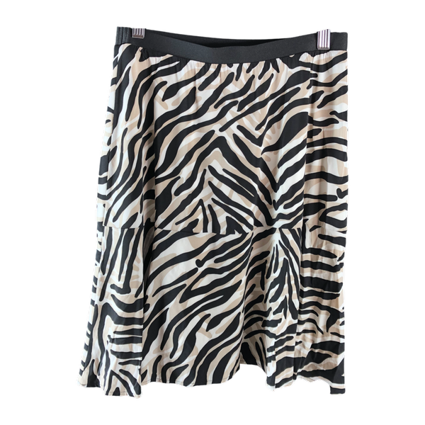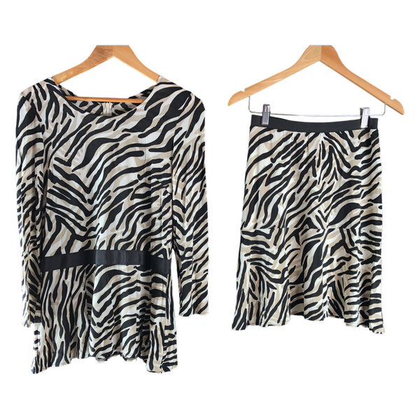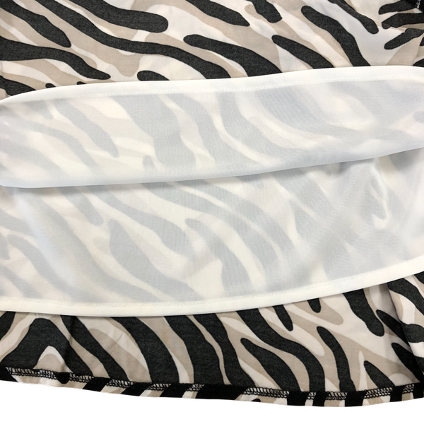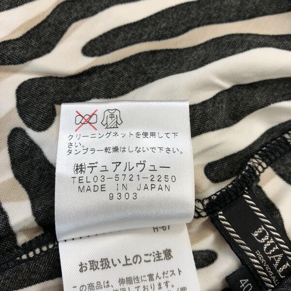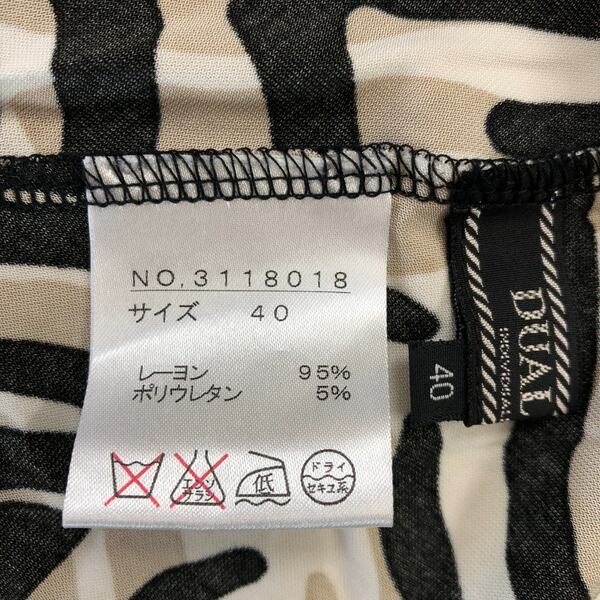デュアルビュー DUAL VIEW セットアップ チュニック スカート ゼブラ柄 フレア とろみ素材 裏地付き ベージュ 黒 白系 40サイズ 980772
