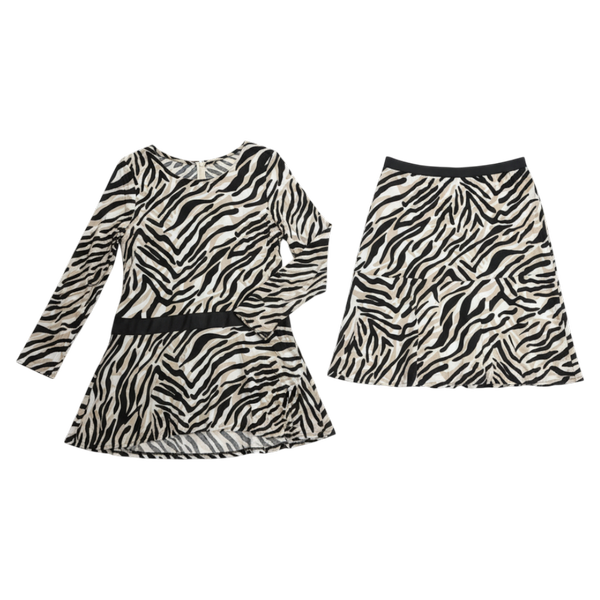 モノトーンのゼブラ柄が目を引く、トップスとスカートのセットアップです。