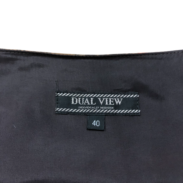 デュアルビュー DUAL VIEW ワンピース ノースリーブ 裏地付き 柄模様 ブラウン系 40サイズ 980774