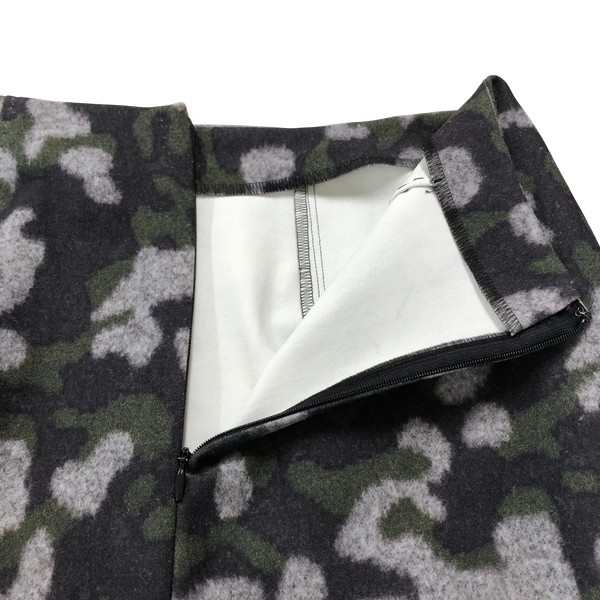 クーム Coomb スカート カモフラージュ柄 バックファスナー サイドポケット スリット グリーン系 38サイズ 980731