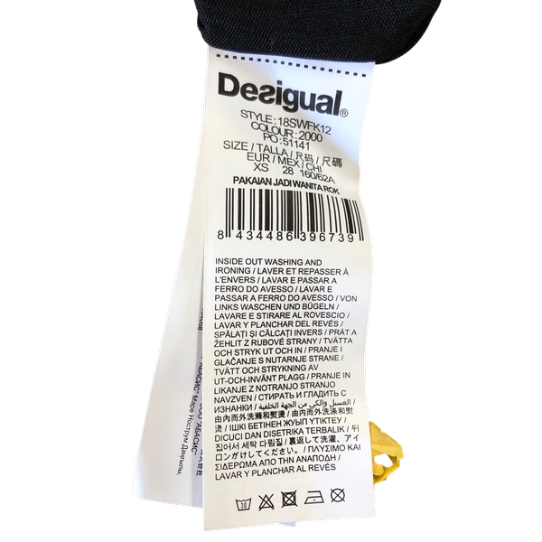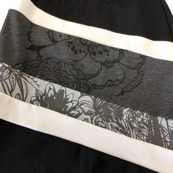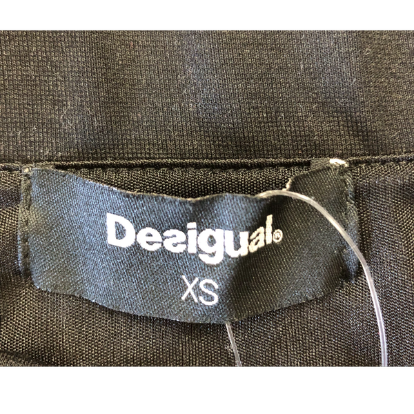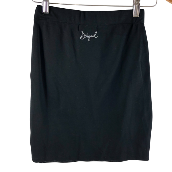 デシグアル Desigual スカート ウエストゴム タグ付き 花 斜め切り替えデザイン モノトーン 黒系 XSサイズ 980734