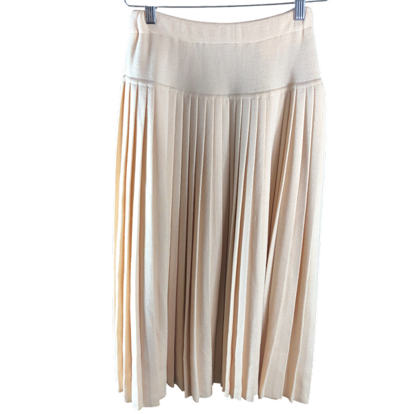 やさしいアイボリーカラーが魅力の、上品なニットプリーツスカートが入荷しました。