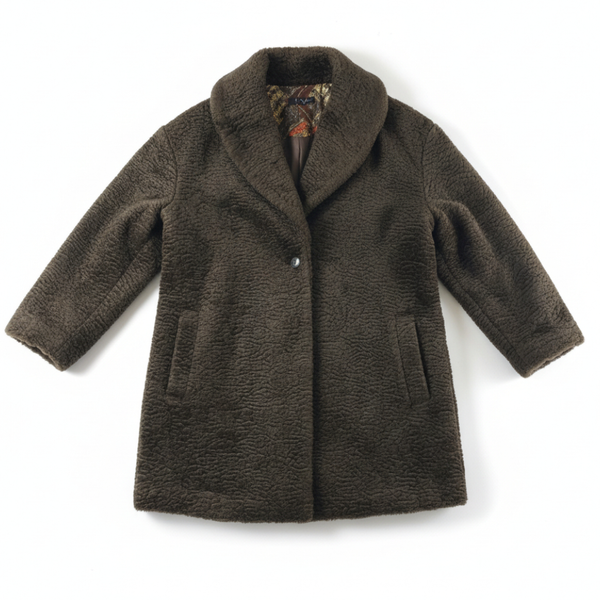 ショールカラーとシンプルなワンボタン仕様で、首元まで包み込むような着心地です。