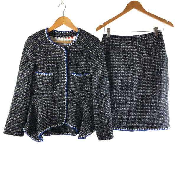 ティーラベント TIRA VENTO セットアップ ジャケット スカート ボタン 裏地付き サイドポケット ラメ入り生地 ブラック系 9AR64サイズ 984654
