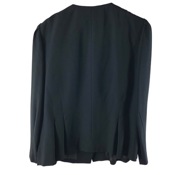 落ち着いたブラックカラーが大人っぽい、上品なノーカラージャケットが入荷しました。