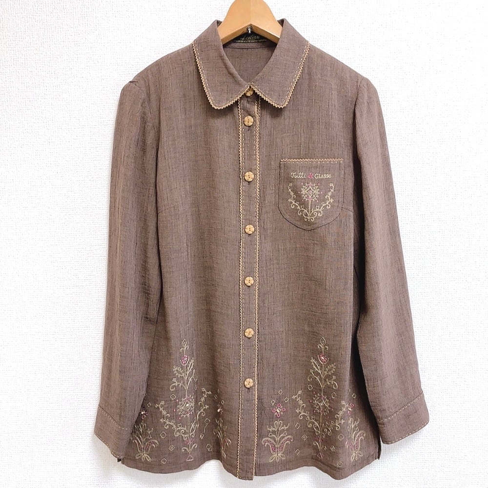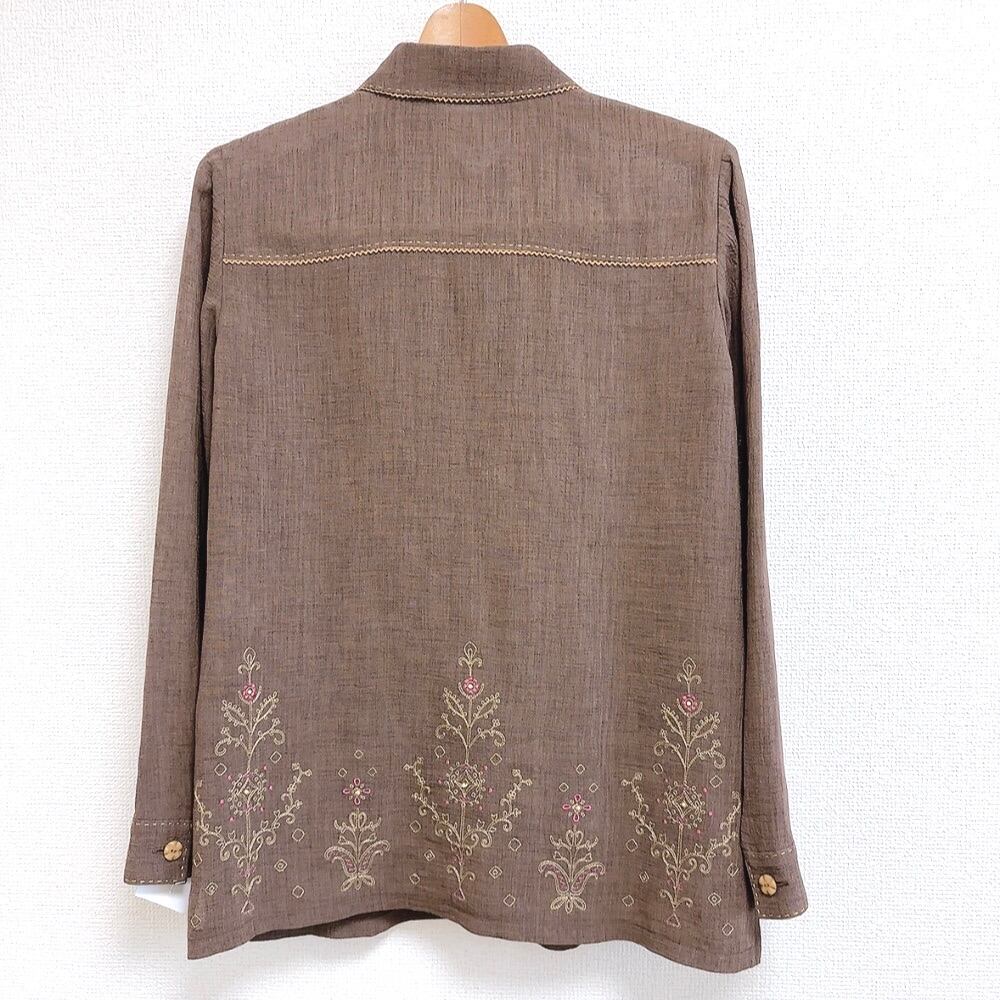 レリアン Leilian ブラウス 長袖 花柄 ブラウン系 9サイズ 978776