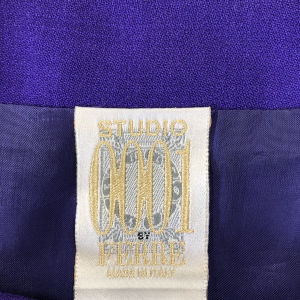 STUDIO 0001 FERRE ワンピース 長袖 フェイクポケット ロング 肩パット 裏地付き イタリア製 紫系 USA8サイズ 984696