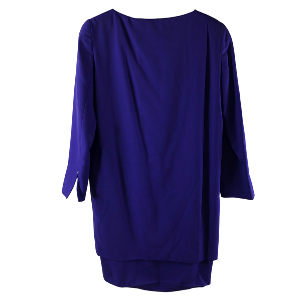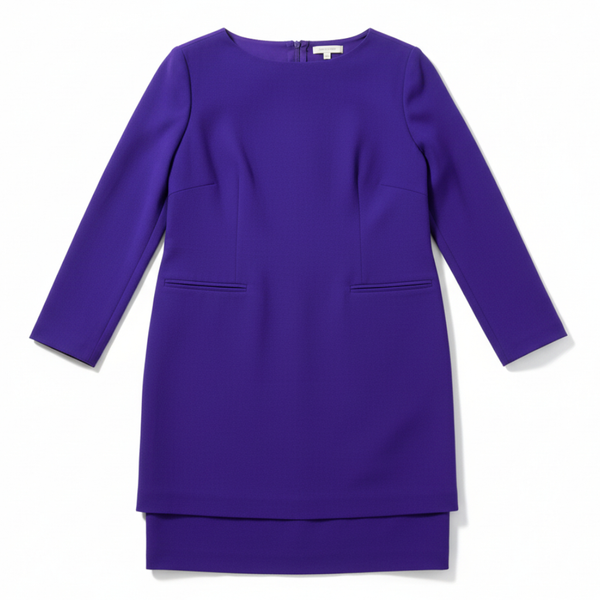 発色のきれいなパープルが目を引く上品なワンピースです。