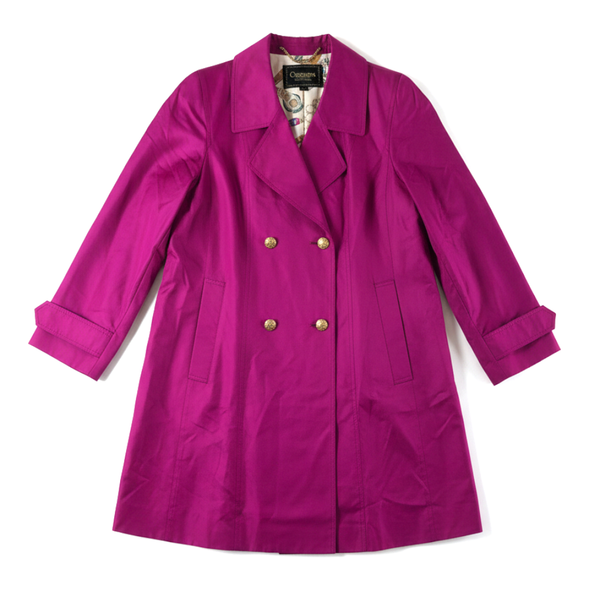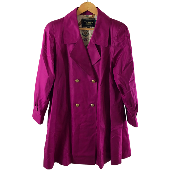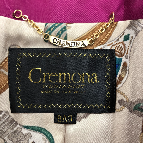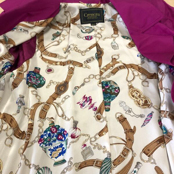クレモナ Cremona コート ロングジャケット 裏地柄模様 チャーム付き 金ボタン 絹100% マゼンタカラー 9A3サイズ 984688
