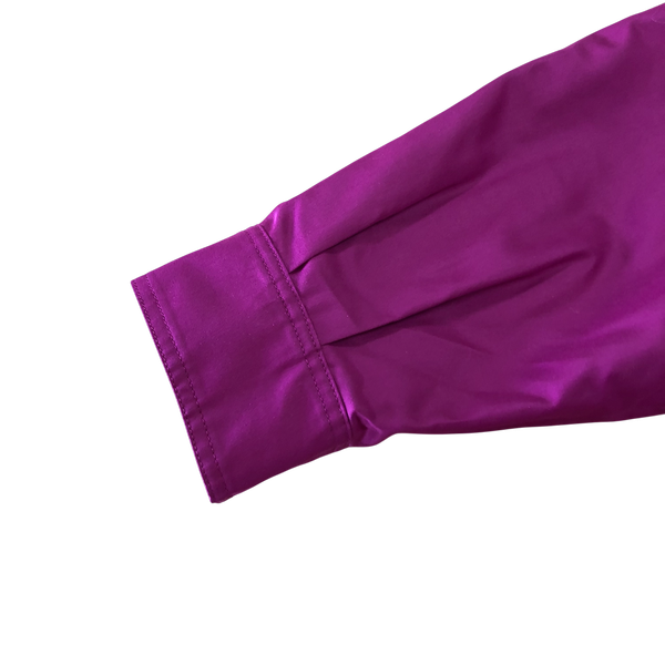 華やかなマゼンタカラーがコーデの主役になるロングジャケットです。