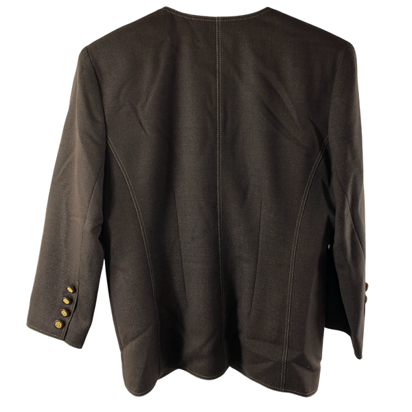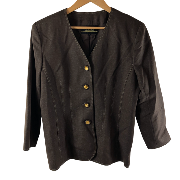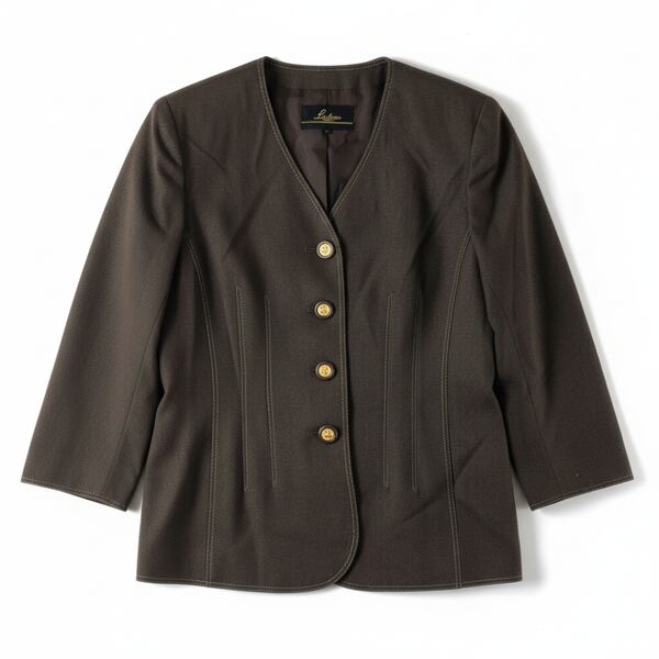 レリアン leilian ジャケット ノーカラー ゴールドボタン ステッチデザイン ブラウン 11サイズ 985723