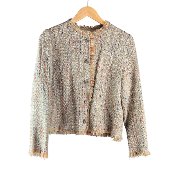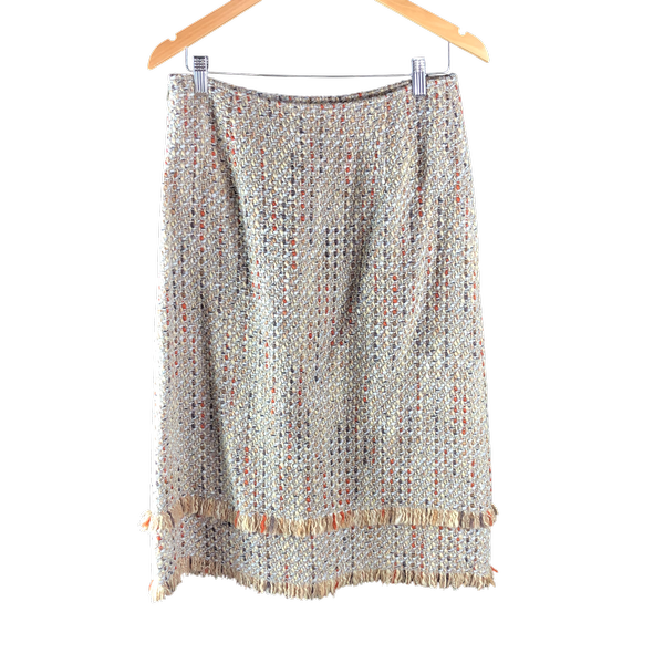 ピアレ piare MICALADY セットアップ ジャケット スカート スーツ ツイード フリンジ 裏地付き タグ付き グレージュ ベージュ系 11サイズ 983404