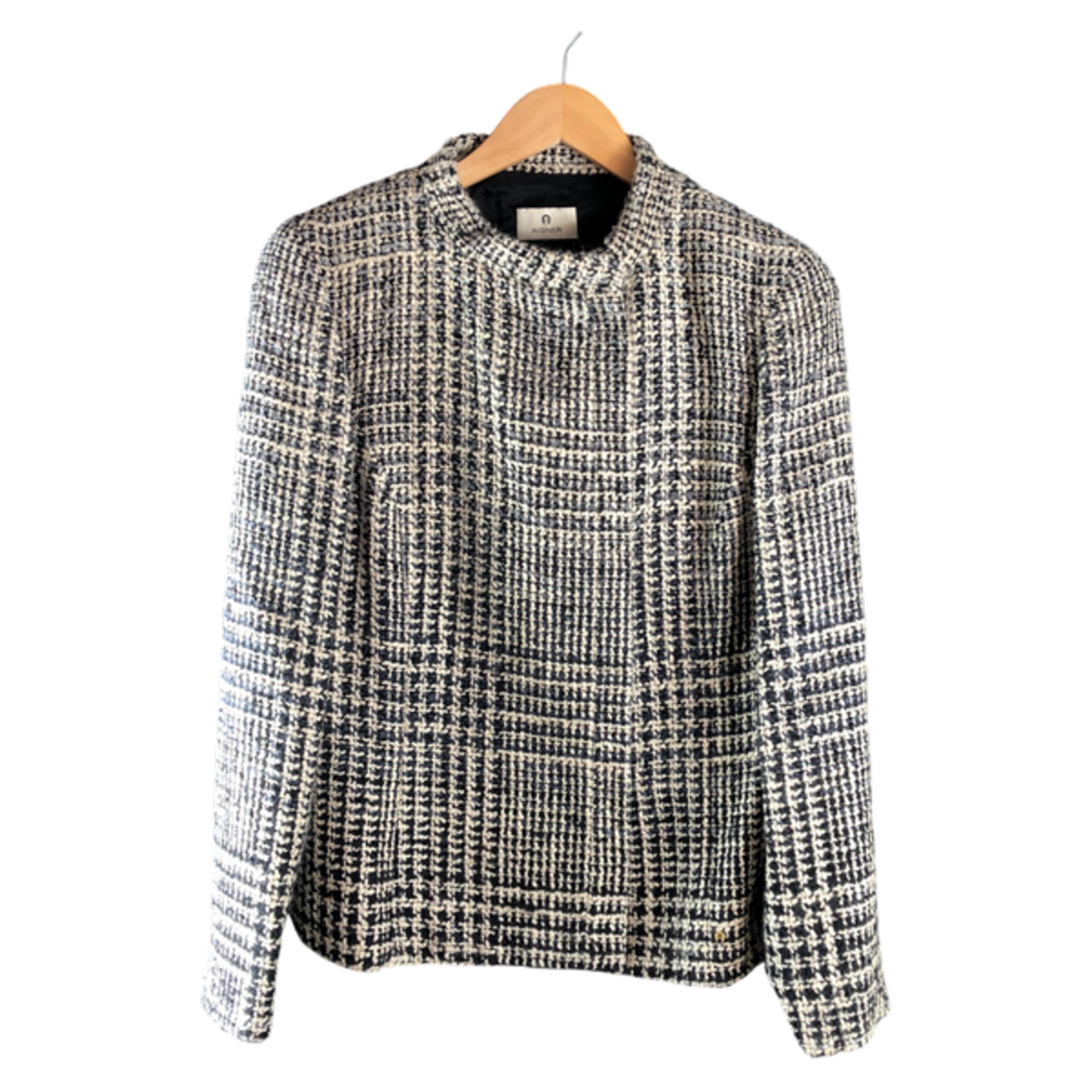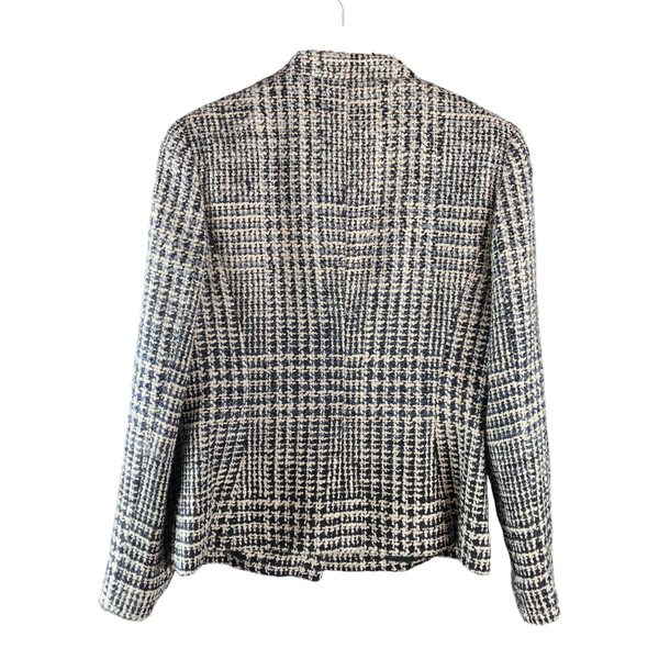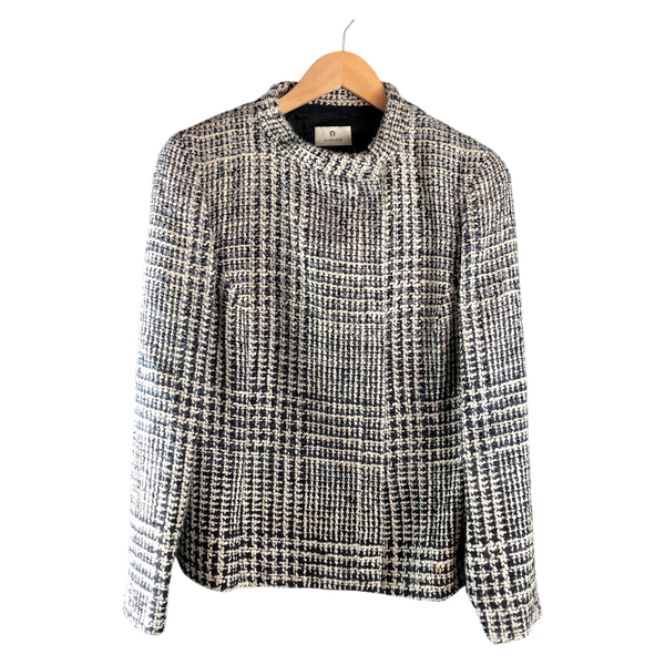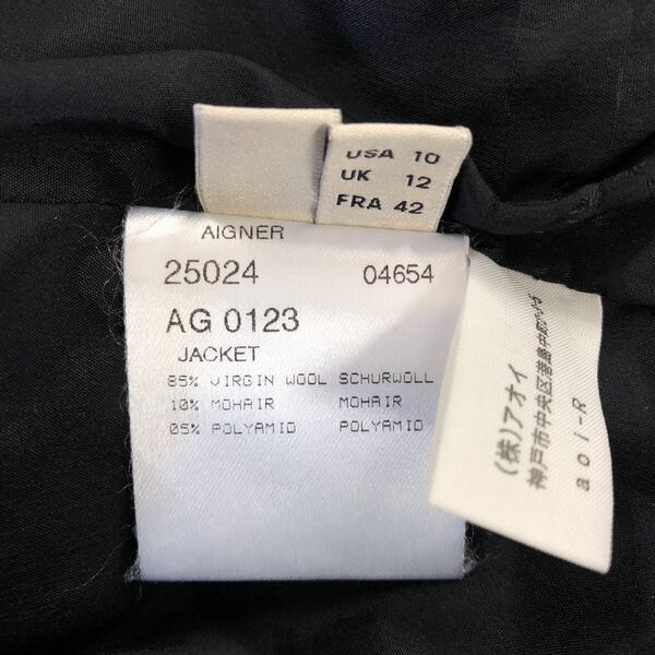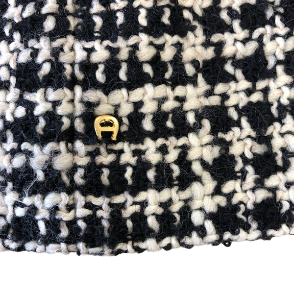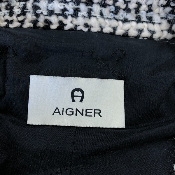 アイグナー AIGNER ジャケット チェック柄 ツイード ロゴ入り ウール 肩パッド 白 黒系 983408