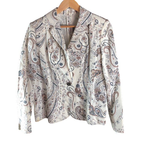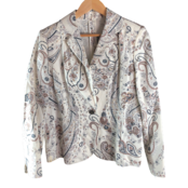 レリアン leilian ジャケット ペイズリー柄 肩パット シルク混 コットン 麻 白 13サイズ 982724