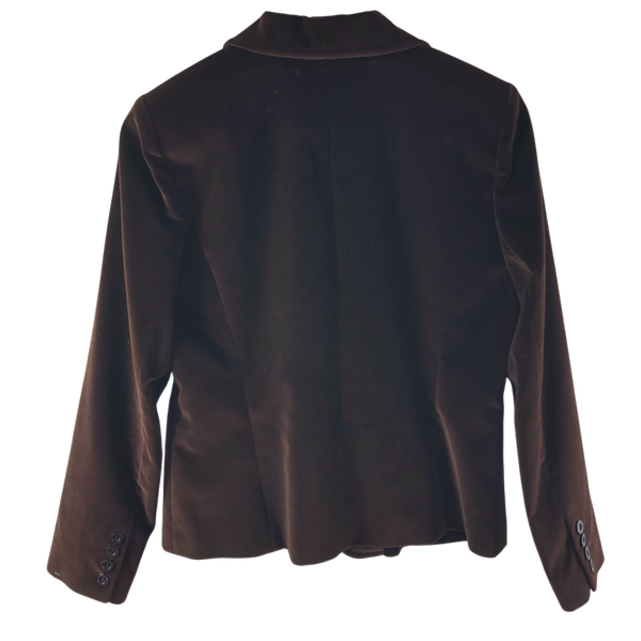 落ち着いたブラウンカラーが大人っぽい、上品なベロア素材のテーラードジャケットです。